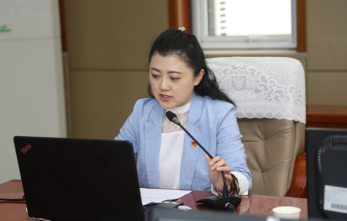 图为王丹丹副书记带领大家学习习近平总书记视察宁夏重要讲话精神