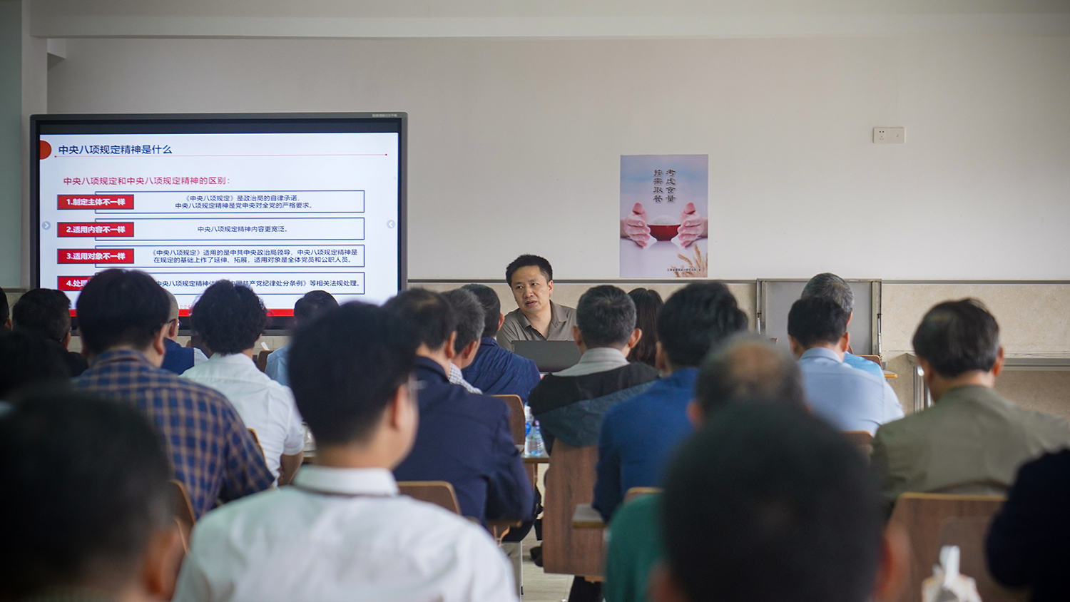 4月23日,中文无码 党委组织学习深入贯彻中央八项规定精神专题党课,特邀江西国际公司纪委副书记邱九龙同志授课。中文无码 领导班子成员、各党支部书记、各单位、部门正副职领导共100余人参加学习。